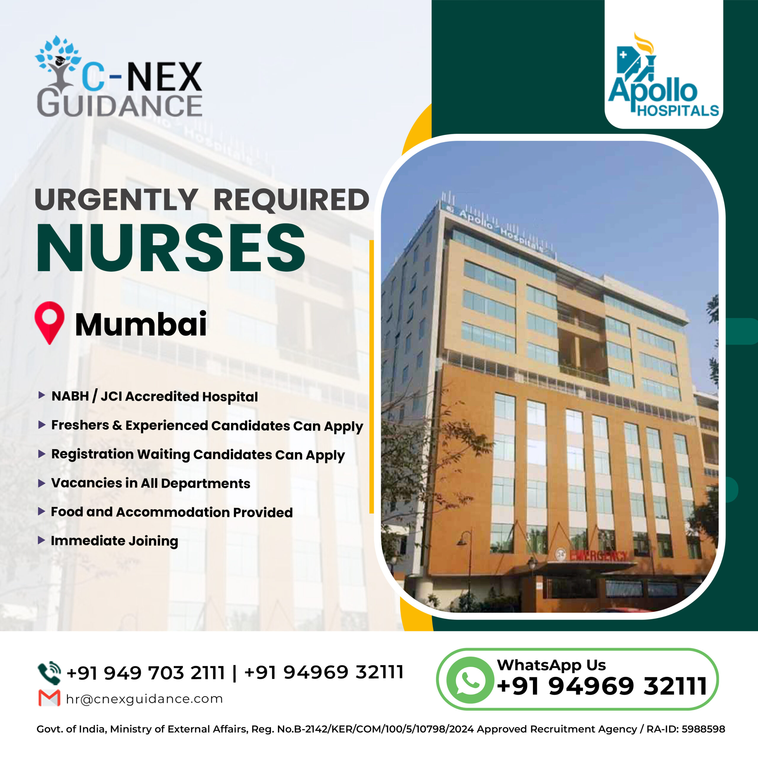 Apollo Hospital, Navi-Mumbai – 480+ bedded JCI , NABL accredited Super Speciality Hospital in Bangalore are looking for Freshers/Experienced M Sc/B Sc/Post B Sc /GNM Nurses to all departments. Interview …