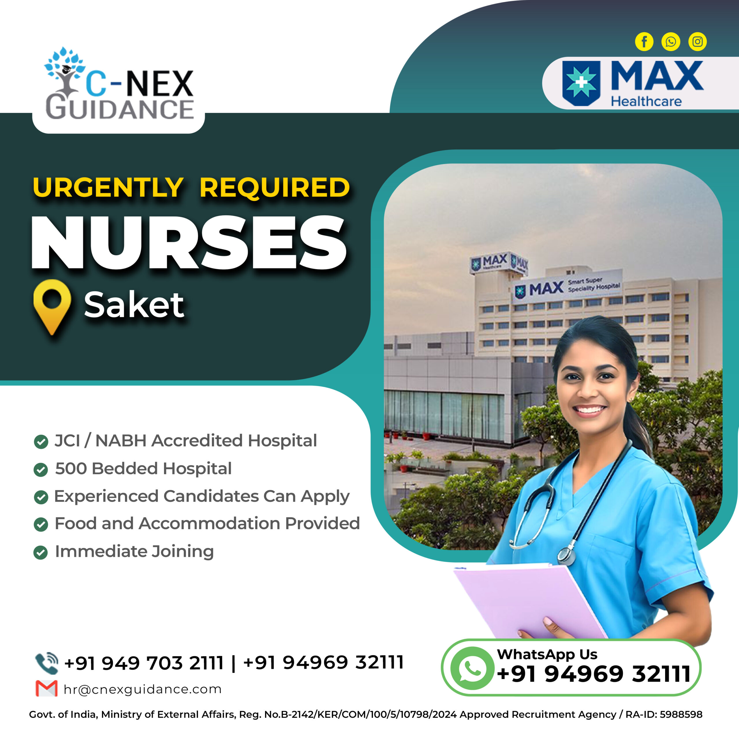 Free Recruitment – MAX Hospital, Saket โย 500+ Bedded NABH Accredited Super Speciality Hospital in Delhi are looking for Experiencedย M Sc/ B Sc/Post B Sc/GNM Nurses to all departments.ย …